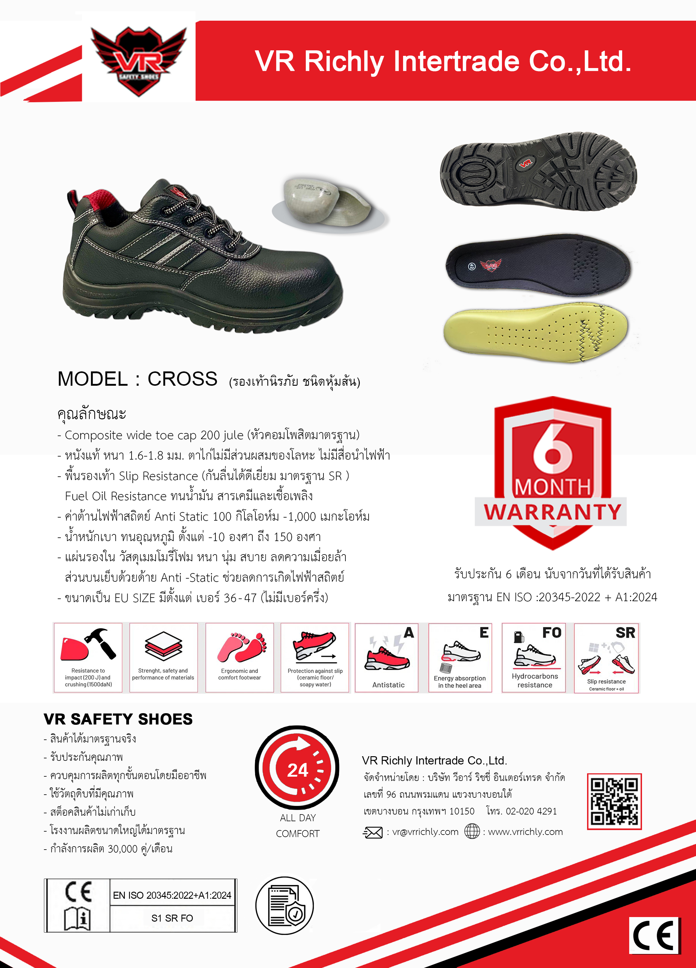 < มาตรฐาน EN ISO : 20345 -2022+A1:2024 S1 SR FO (ฉบับ update ล่าสุด) >